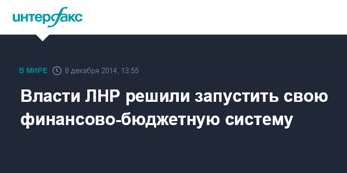 "В связи с тем, что украинская власть в одностороннем порядке приняла решение заблокировать все счета юридических и физических лиц и вывести с территории ЛНР все банковские и бюджетные организации, принято решение о создании финансово-бюджетной системы Луганской народной республики и подготовке нормативно-правовых актов в сфере организации бюджетного процесса", - заявил Мануйлов на пресс-конференции в понедельник.