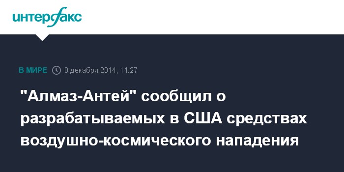 Москва. 8 декабря. INTERFAX.RU - США ведут разработку принципиально новых средств воздушно-космического нападения, позволяющих кардинально изменить ход и исход боевых действий при проведении воздушно-космических операций, заявил в понедельник генеральный конструктор концерна ПВО "Алмаз-Антей" Павел Созинов.