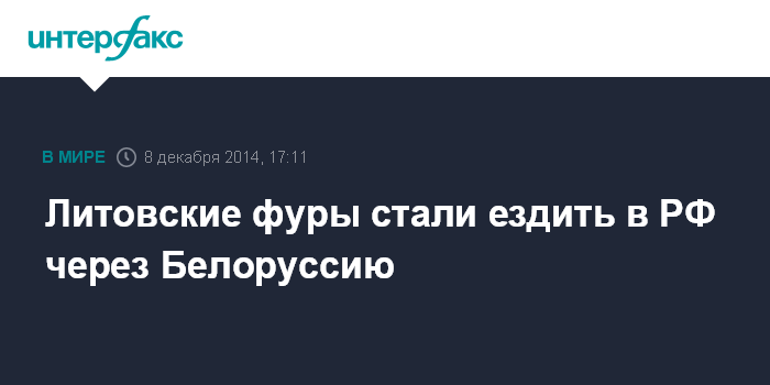 Москва. 8 декабря. INTERFAX.RU - Руководитель ассоциации перевозчиков Литвы Linava Альгимантас Кондрусявичюс заявил, что поток автомобилей литовских перевозчиков в Россию теперь следует не через Латвию, а через Белоруссию из-за ужесточения проверок со стороны РФ.
