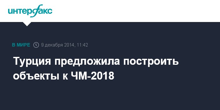 Москва. 9 декабря. INTERFAX.RU -Турция хотела бы принять участие в строительстве объектов в России для чемпионата мира по футболу 2018 года, сообщил журналистам источник в МИД Турции.