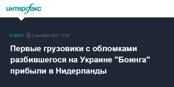 Москва. 9 декабря. INTERFAX.RU - Первый конвой с обломками малазийского авиалайнера "Боинг-777" пересек границу Нидерландов в ночь на вторник, сообщают западные СМИ.