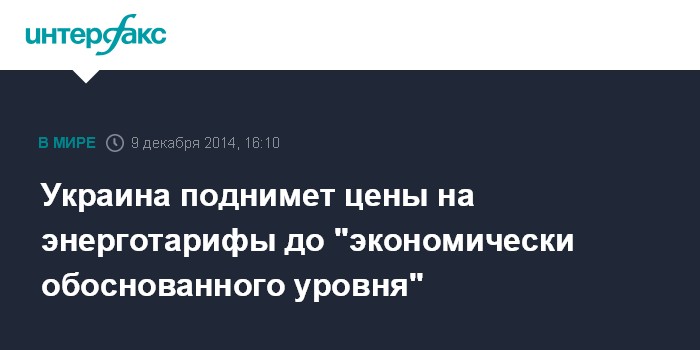 Москва. 9 декабря. INTERFAX.RU - Украина будет поднимать цены и тарифы на все энергоносители до экономически обоснованного уровня, заявил премьер-министр Украины Арсений Яценюк на заседании правительства во вторник.