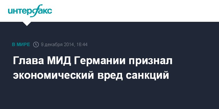 Москва. 9 декабря. INTERFAX.RU - Взаимные санкции России и стран Евросоюза затрудняют экономический обмен и усугубляют политическую обстановку, заявил министр иностранных дел Германии Франк-Вальтер Штайнмайер.