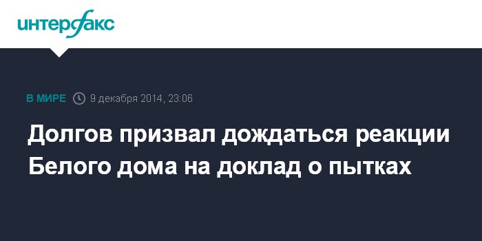 Москва. 9 декабря. INTERFAX.RU - Уполномоченный МИД России по правам человека Константин Долгов заявляет, что доклад сената США о применении пыток ЦРУ не содержит ничего нового, но при этом призывает дождаться реакции Белого дома.