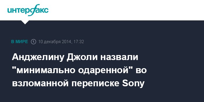 Москва. 10 декабря. INTERFAX.RU - Во взломанной переписке сотрудников Sony Pictures обнаружились фрагменты, в которых авторы писем дают нелестные характеристики голливудским звездам, в частности Анджелине Джоли. "Слитую" переписку опубликовали в блоге Defamer.