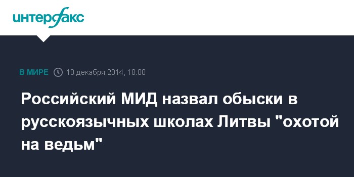 Москва. 10 декабря. INTERFAX.RU - В российском МИД возмущены прошедшими на прошлой неделе обысками в ряде русскоязычных школ Вильнюса и расценивают это как "охоту на ведьм" в духе холодной войны.