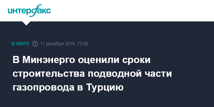 Москва. 11 декабря. INTERFAX.RU - Проектирование подводной части газопровода в Турцию займет 1-1,5 года, сообщил замглавы Минэнерго Кирилл Молодцов журналистам.