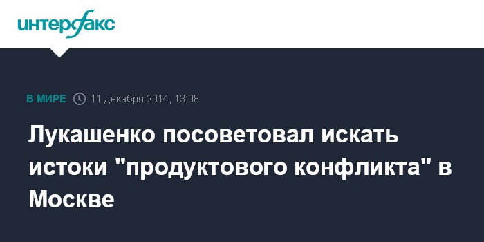 Москва. 11 декабря. INTERFAX.RU - Президент Белоруссии Александр Лукашенко считает, что причину конфликтной ситуации с ограничением поставок продовольствия в Россию нужно искать не в Белоруссии.