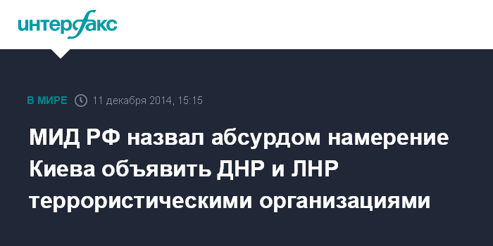 МИД РФ назвал абсурдом намерение Киева объявить ДНР и ЛНР террористическими организациями