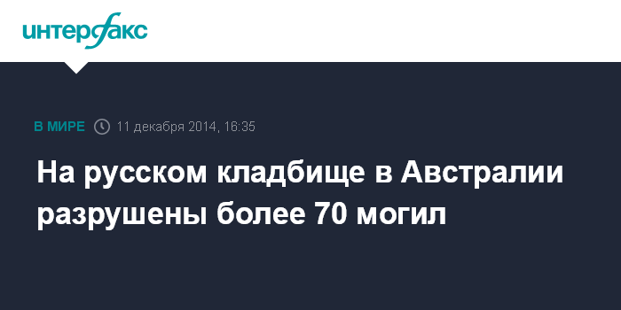 На русском кладбище в Австралии разрушены более 70 могил
