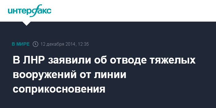 Москва. 12 декабря. INTERFAX.RU - В руководстве самопровозглашенной Луганской народной республики заявляют об отводе тяжелых вооружений от линии соприкосновения с украинскими военными.