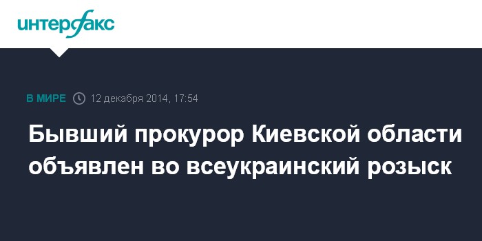 Москва. 12 декабря. INTERFAX.RU - Генеральная прокуратура Украины уведомила о подозрении и объявила в розыск бывшего прокурора Киевской области за причастность к незаконному освобождению из колонии бывшего народного депутата Виктора Лозинского. Об этом на брифинге в пятницу в Киеве сообщил старший помощник генерального прокурора по особым поручениям Валерий Карпунцов. По его словам, бывший прокурор объявлен во всеукраинский розыск, изучаются основания для объявления его в международный розыск.