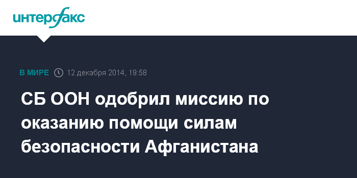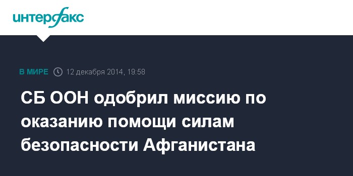 Москва. 12 декабря. INTERFAX.RU - Совет Безопасности ООН в пятницу проголосовал в поддержку миссии по оказанию помощи афганским силам безопасности, начиная с 1 января 2015 года.