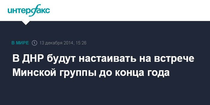 В ДНР будут настаивать на встрече Минской группы до конца года