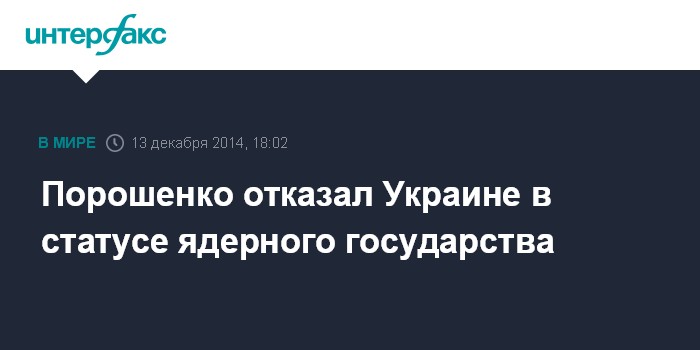 Москва. 13 декабря. INTERFAX.RU - Президент Украины Петр Порошенко заявил, что республика не собирается поступать безответственно и становиться ядерным государством.