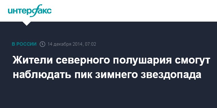 Москва. 14 декабря. INTERFAX.RU - Ежегодный метеоритный поток Геминидов достигнет своего пика в северном полушарии 14 декабря. Об этом сообщает ВВС.