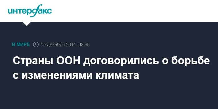 Москва. 15 декабря. INTERFAX.RU - В столице Перу Лиме страны ООН провели конференцию по вопросам изменения климата и подписали проект соглашения с соответствующими мерами, сообщил телеканал CNN в понедельник.
