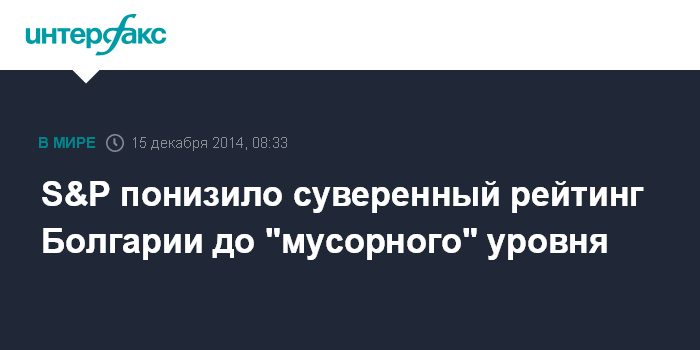 S&P понизило суверенный рейтинг Болгарии до "мусорного" уровня
