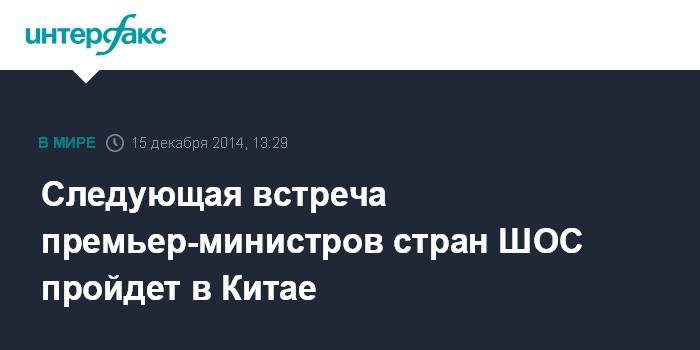 Следующая встреча премьер-министров стран ШОС пройдет в Китае