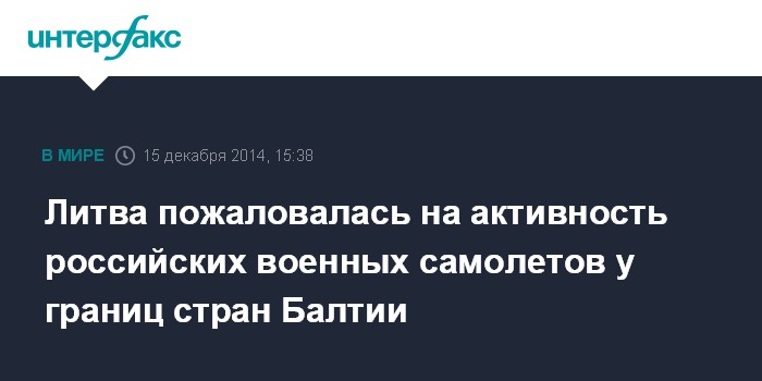 Москва. 15 декабря. INTERFAX.RU - Истребители НАТО, охраняющие воздушное пространство балтийских стран, на прошлой неделе 21 раз поднимались в небо, чтобы опознать и сопроводить российские военные самолёты, которые пролетали рядом с границами Латвии, Литвы и Эстонии, сообщило в понедельник литовское военное ведомство.