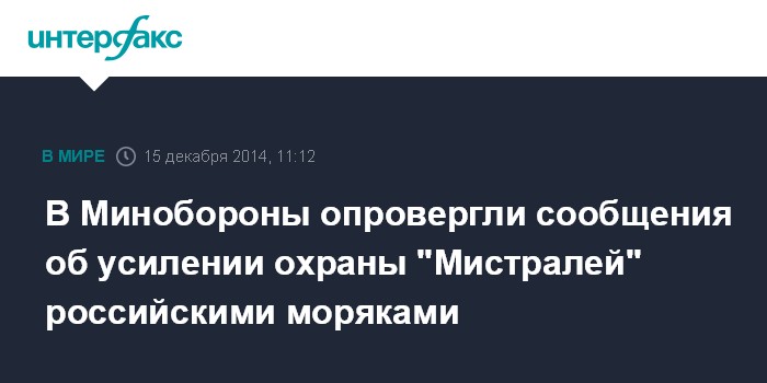 Так в Минобороны прокомментировали появившуюся в СМИ информацию о том, российские моряки усилили охрану вертолетоносца "Мистраль" в Сен-Назере.