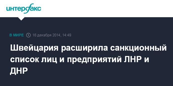 Швейцария расширила санкционный список лиц и предприятий ЛНР и ДНР