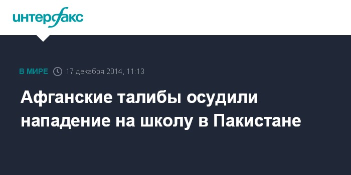 Москва. 17 декабря. INTERFAX.RU - Афганские талибы считают, что кровопролитное нападение их пакистанских соратников на школу в Пешаваре противоречит принципам ислама, сообщают западные СМИ.