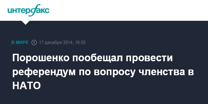 Москва. 17 декабря. INTERFAX.RU - Президент Украины Петр Порошенко заявил, что по завершении визита в Варшаву намерен внести в Верховную раду законопроект об отказе от внеблокового статуса страны, а также пообещал провести референдум по поводу вступления страны в НАТО.