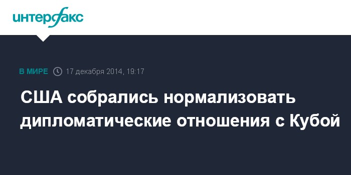 Москва. 17 декабря. INTERFAX.RU - США намерены восстановить дипломатические отношения с Кубой, сообщают в среду американские СМИ. Дипотношения между странами были прерваны в 1961 году.