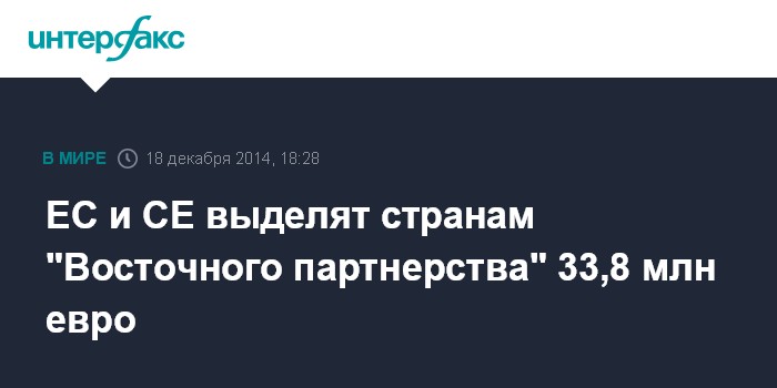 ЕС и СЕ выделят странам "Восточного партнерства" 33,8 млн евро