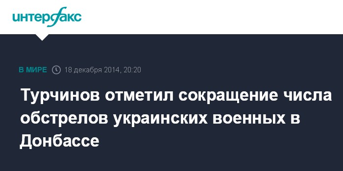 Москва. 18 декабря. INTERFAX.RU - Секретарь Совета национальной безопасности и обороны (СБО) Украины Александр Турчинов заявил об уменьшении частотности обстрелов со стороны ополченцев с момента введения режима тишины 9 декабря.
