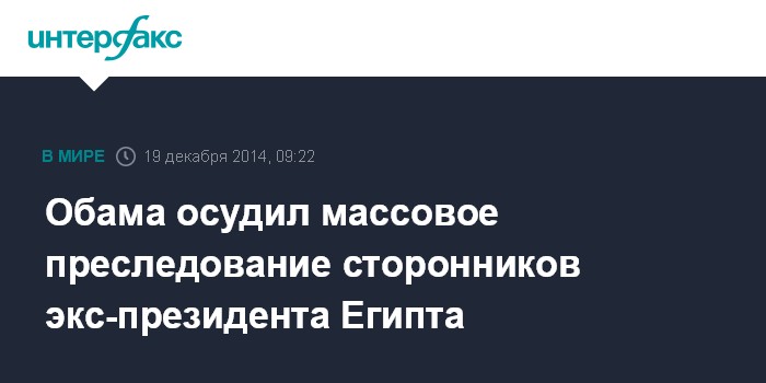 Москва. 19 декабря. INTERFAX.RU - Президент США Барак Обама в телефонном разговоре с египетским коллегой Абдель Фатахом ас-Сиси выразил обеспокоенность в связи с массовыми судебными процессами, а также продолжающимися задержаниями журналистов и гражданских активистов в Египте.