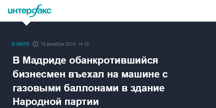 В Мадриде обанкротившийся бизнесмен въехал на машине с газовыми баллонами в здание Народной партии