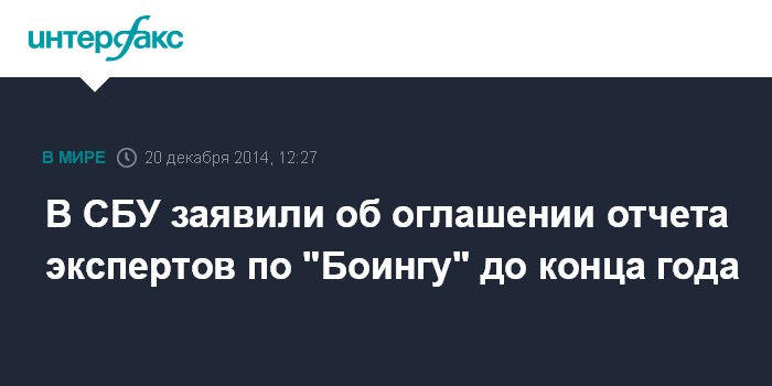 Москва. 20 декабря. INTERFAX.RU - Международная группа экспертов по расследованию причин крушения малазийского "Боинга" в Донецкой области сосредоточится на точном определении причины авиакатастрофы, сообщается на сайте Службы безопасности Украины (СБУ) в субботу.