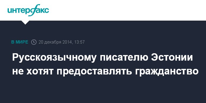 Москва. 20 декабря. INTERFAX.RU - Министерство культуры Эстонии не желает поддерживать предложение ректора Таллинского университета Тийта Ланда (Tiit Land) предоставить эстонское гражданство за особые заслуги известному писателю Андрею Иванову.