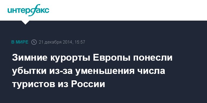 "В этом году мы получили меньше заказов от наших клиентов из России. То же было и с летними курортами, где их (россиян - ИФ) было меньше", - приводит агентство слова директора по маркетингу одной из консалтинговых фирм во французских Альпах.