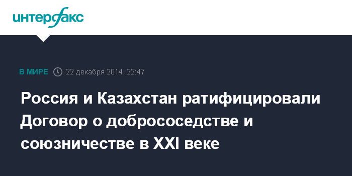 Россия и Казахстан ратифицировали Договор о добрососедстве и союзничестве в XXI веке