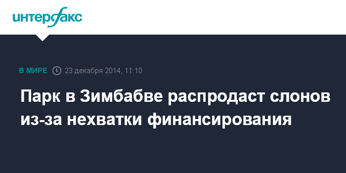 Москва. 23 декабря. INTERFAX.RU - Зимбабве вынуждена продать более 60 слонов в Китай, Францию и ОАЭ, поскольку Национальному парку Хванге, крупнейшему в стране, не хватает государственного финансирования, сообщает агентство Bloomberg.