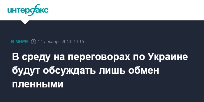 Москва. 24 декабря. INTERFAX.RU - Участники переговоров в формате контактной группы по Украине в ходе очередного раунда в среду в Минске планируют согласовать лишь вопрос обмена пленными, заявил "Интерфаксу" источник в делегации самопровозглашенных Донецкой и Луганской народных республик.