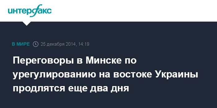 Москва. 25 декабря. INTERFAX.RU - Глава самопровозглашенной Донецкой народной республики Александр Захарченко ожидает, что переговоры в Минске по урегулированию на востоке Украины могут продлиться еще два дня.