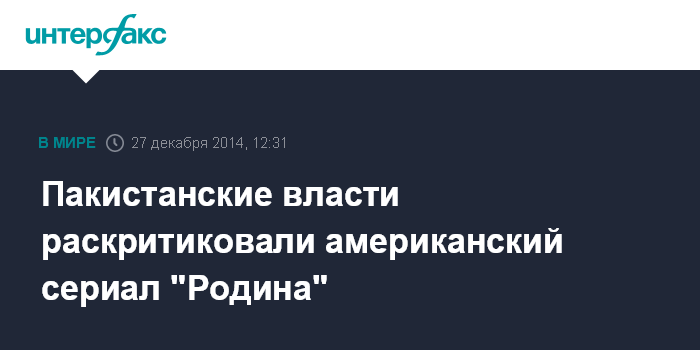 Москва. 27 декабря. INTERFAX.RU - Пакистанские дипломаты посмотрели все 12 серий четвертого сезона сериала "Родина" (Homeland), действие которого происходит в Исламабаде, и остались им крайне недовольны.