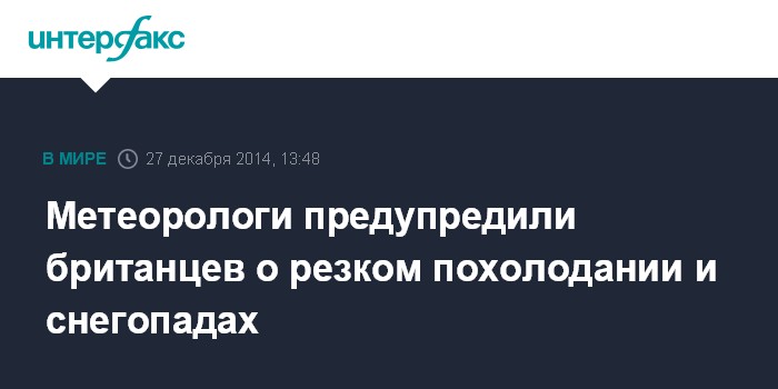 Москва. 27 декабря. INTERFAX.RU - Национальная метеослужба Великобритании прогнозирует сильный мороз, снегопады и гололед в ряде регионов Соединенного Королевства в ближайшие дни, сообщает в субботу телеканал Sky news.