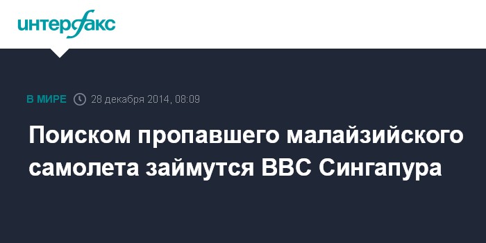 Москва. 28 декабря. INTERFAX.RU - Самолеты ВВС Сингапура в воскресенье подключатся к поиску пропавшего с экранов радаров самолета А-320-200 малайзийской авиакомпании AirAsia, сообщил журналистам представитель администрации гражданской авиации страны.