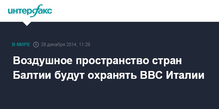 Москва. 28 декабря. INTERFAX.RU - В Литву на авиабазу в Шяуляе в воскресенье для охраны воздушного пространства стран Балтии в рамках миссии НАТО прибывают четыре истребителя Eurofighter Typhoon ВВС Италии. Как сообщают СМИ стран Балтии, итальянские истребители впервые примут участие в этой миссии.
