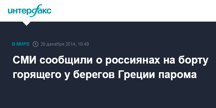 "Интерфакс" не располагает официальным подтверждением информации о наличии граждан России на борту парома.