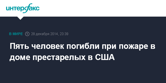 Москва. 28 декабря. INTERFAX.RU - Пять человек погибли и еще трое госпитализированы в результате пожара в доме престарелых в американском городе Сан-Антонио (штат Техас). Об этом сообщает AP.