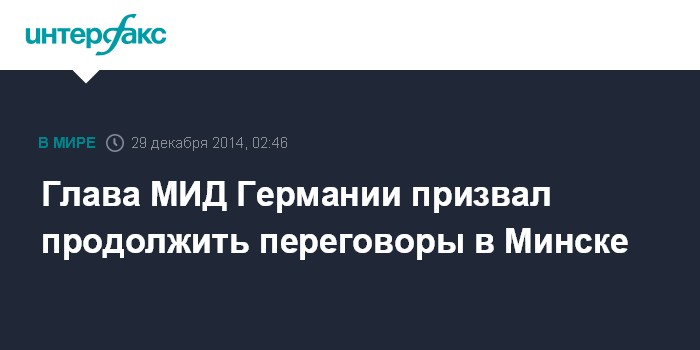 Москва. 29 декабря. INTERFAX.RU - Глава МИД Германии Франк-Вальтер Штайнмайер призвал к скорейшему созыву нового раунда переговоров контактной группы по урегулированию конфликта на востоке Украины. Об этом сообщается на сайте МИД ФРГ.