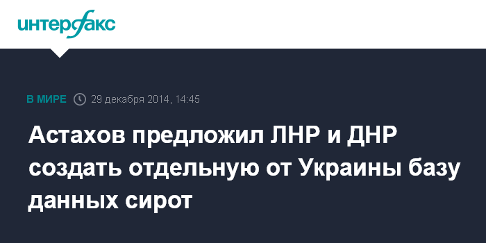 Москва. 29 декабря. INTERFAX.RU - Уполномоченный по правам ребенка при президенте РФ Павел Астахов считает, что самопровозглашенные республики ЛНР и ДНР могут создать свои банки данных детей-сирот, что откроет путь для их усыновления россиянами.