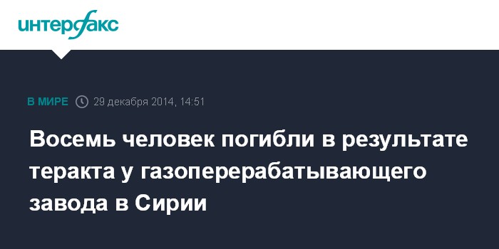 Восемь человек погибли в результате теракта у газоперерабатывающего завода в Сирии