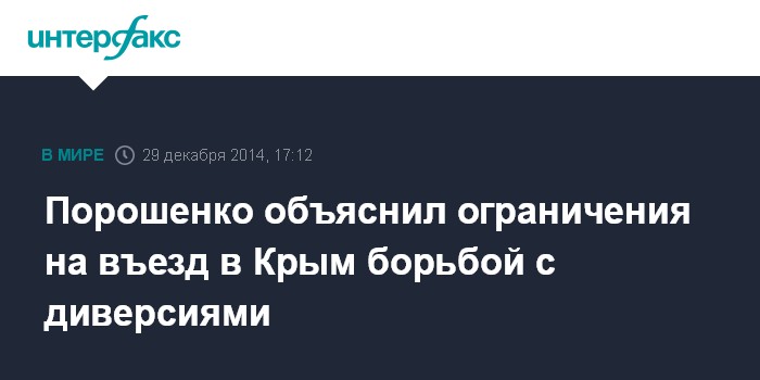 Порошенко также опроверг, что Украина осуществляет блокаду Крыма. "Нет никакой блокады Крыма. Есть меры, которые обеспечивают защиту Украины от диверсионных групп", - сказал он.